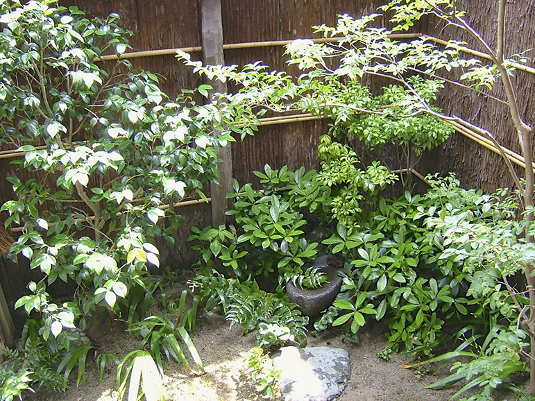 In daily life, such a garden would be viewed from a seated or kneeling pose, using large zabuton floor cushions on the woven tatami mats. The bamboo lattice and mud walls are covered with insect-repelling cedar bark, and the annual cycle of each chosen plant highlights seasonal weather changes – a microcosmic world contained within a small courtyard.