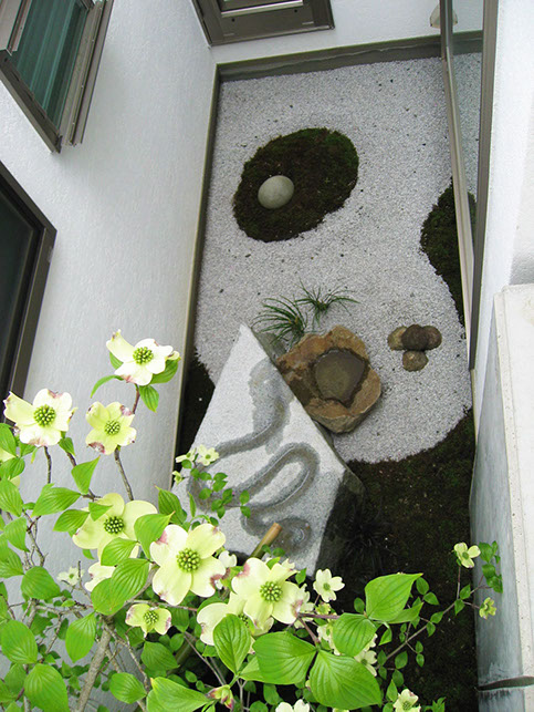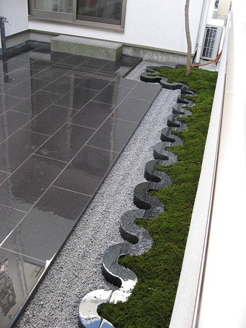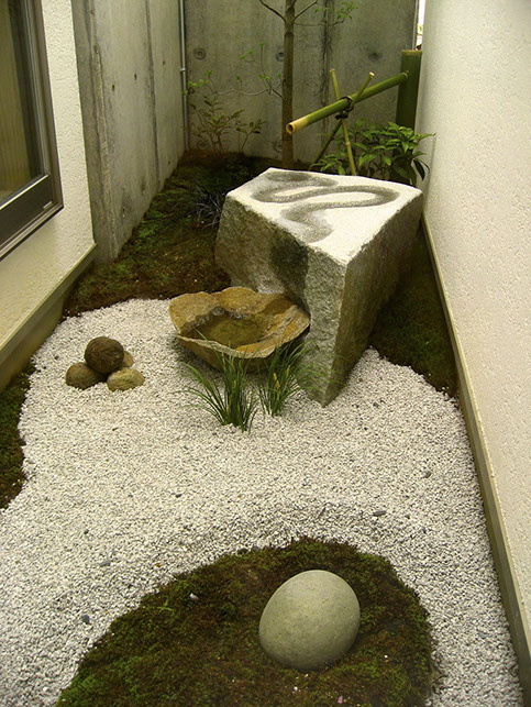 Also called Dragon Garden, this design is a modern take on the karesansui tradition of combining gravel, rock features and moss. This client requested a garden that would not require any maintenance.
