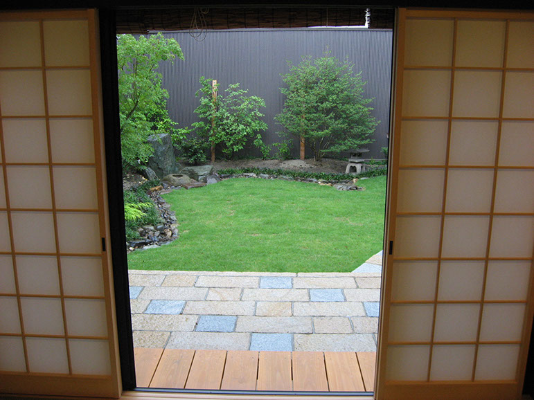 This tsukubai garden features the famous Yoshino River greenstone that has been loved and revered by Kyoto landscape designers for centuries. The space was first taken back to completely bare earth, and some pre-existing materials were set aside, later to be fused with new features to create this unique design.